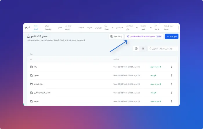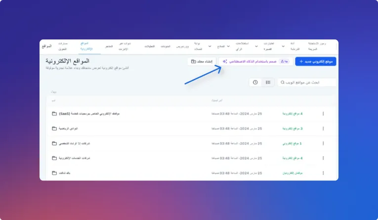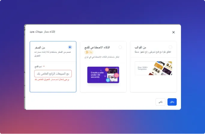 أدخل نوع نشاطك ليقترح عليك الذكاء الاصطناعي هيكل الصفحات، الأقسام، والنصوص الأولية الجاهزة للتعديل.